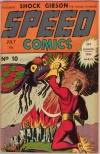Fixed to correct page sequence errors when using Preview Function. Shock Gibson was created in 1939 by artist Maurice Scott and an uncredited writer. He is the first superhero to gain powers by being splashed with chemicals. Brookwood Publishing published the first 11 issues of "Speed Comics" in which Shock Gibson appeared. After this, Family Comics (later Harvey Comics) took over publishing and changed the character. This compilation includes Shock's appearances in "Speed Comics" #7 to 11. Mothra makes her uncredited debut in any media on the cover of "Speed Comics" #10. Many thanks go out to all the owners, scanners and uploaders - JVJ, bhcomics, citaltras, freddyfly, OtherEric and whomever else I have forgotten about. |