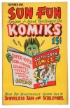 1939 one-shot from Sun Publications. Here are 9pgs from this very rare comic culled from an auction site. 8-1/8x10-7/8" with stiff paper covers and 32 pulp paper pages. You can read more about this in the links above. This one is said to be full of comic firsts - * First parody on comic books * First picture of and reference to Hitler * First oversized comic * First 15 cent cover price * 'Supersam' is first superman parody including an upended car alluding to Action#1. * First sidekick 'Beelzebub' the wonder dog. * In a one-page gag, war planes drop copies of 'Gus the Goon Comics' on a German town, and a running Nazi, as WWII propaganda. 'Gus' apparently beat the other Golden Age heroes in going against the 'Axis of Evil.' |